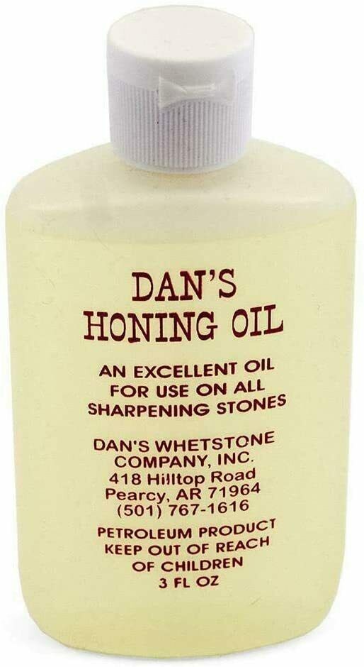 Dan’s honing oil is recommended to be used with your sharpening stones during and after sharpening. Small metal shavings are made when you sharpen your blade and these can clog the pores in your stone. Dan’s honing oil is a light mineral oil that helps keep your stone’s pores from getting clogged. The oil is necessary to maintain the effectiveness of your stone. In addition, it is a good all purpose lubricant for many of your household needs to include squeaky hinges and sewing machines.