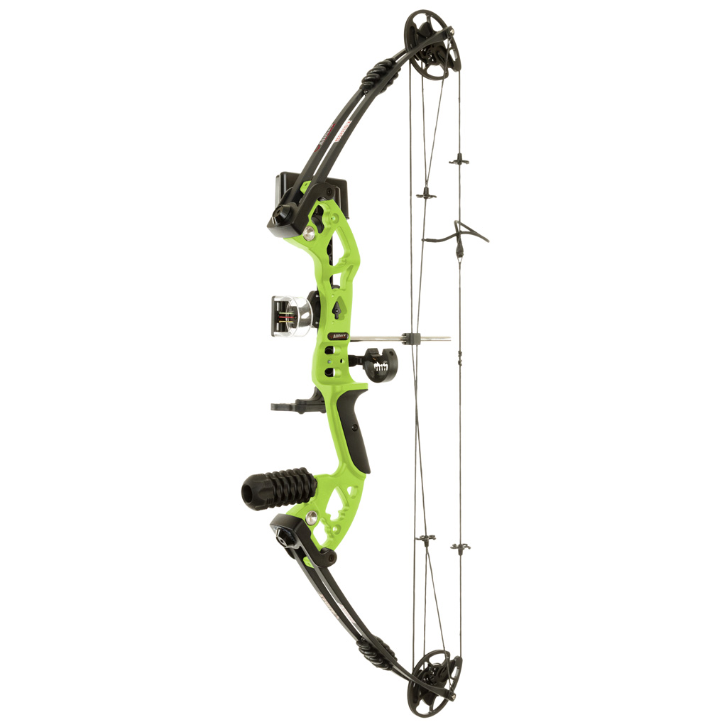 Split limb dual cam youth compound bow. Features CNC machined aluminum cams,fiberglass limbs and a magnesium riser. Peep sight and D-loop pre-installed. Axle to axle:30,Brace Height:7.3,Draw Weight:20-55 lbs,Draw Length:24-30,Bow Weight:3.9 lbs. Package includes sight,rest,stabilizer,and quiver.